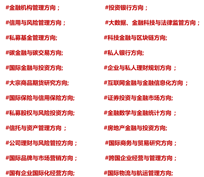 专业课:高级公司金融,统计与计量分析,证券投资与金融市场分析,宏观经济监测预警,数字经济与产业融资,商业银行经营与管理,量化金融与金融科技,金融创新专题。